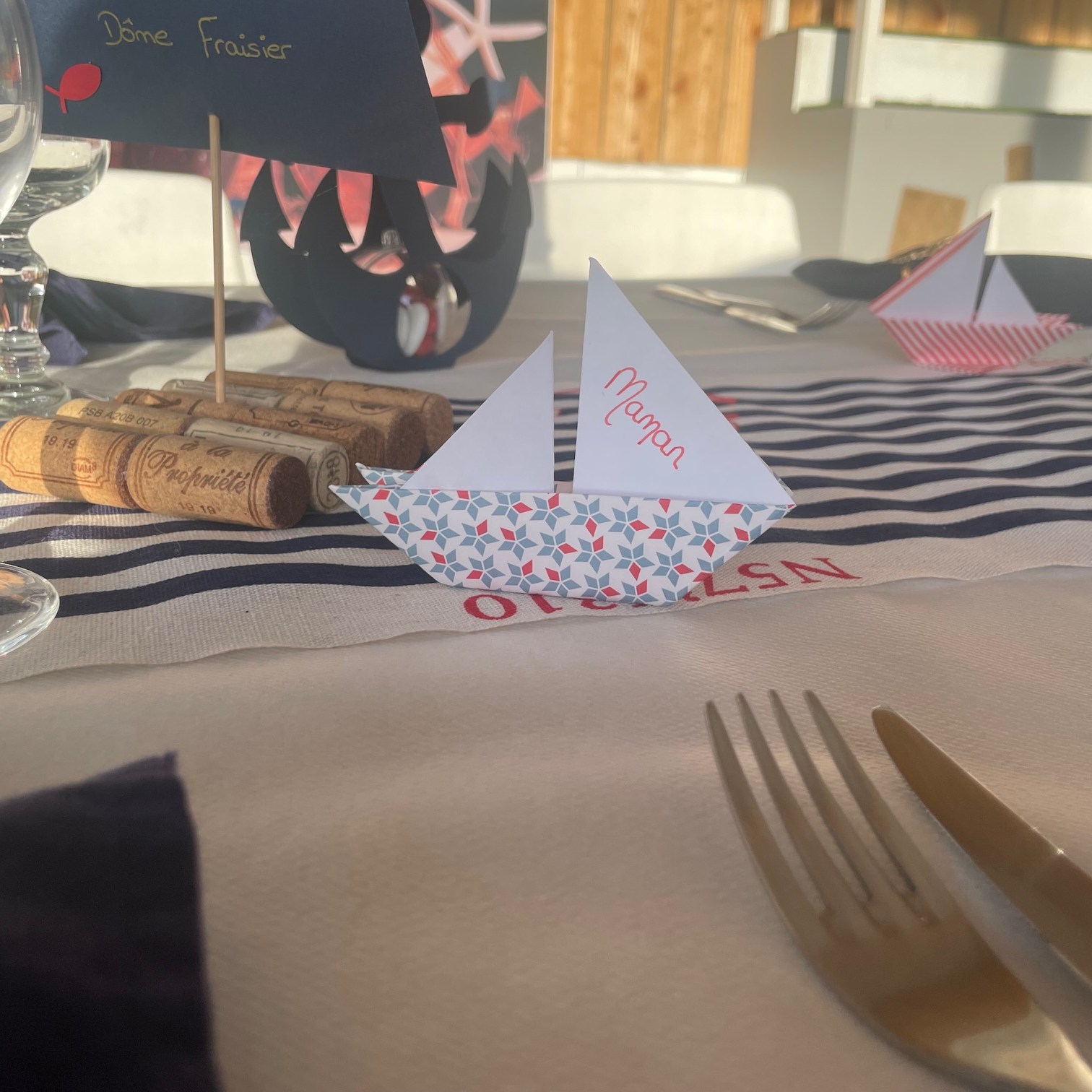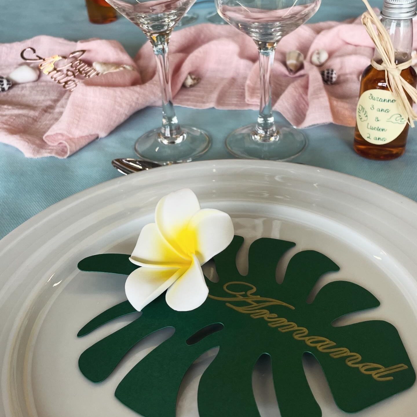 Plan de table, pliage de serviettes en papier ou tissu, centres de table, compositions florales, cadeaux pour les invités, boîtes à dragées, backdrop, coin photo, etc…